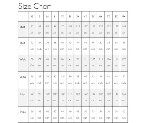 To 9X (Bust 142cm/56inch, Hip 152cm/60inch)