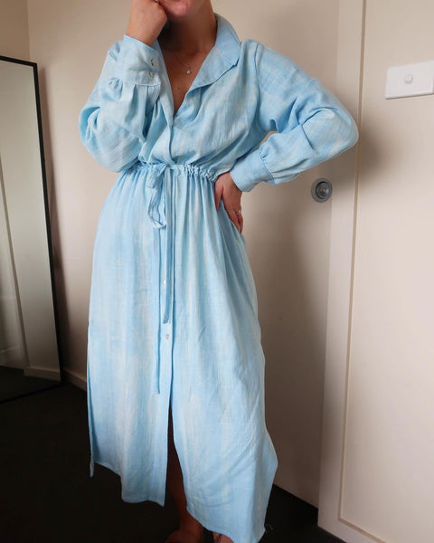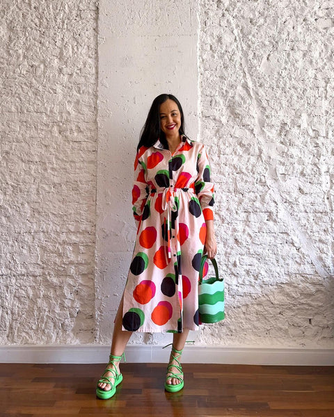 The Ritual dress (View A Dress) features a modern take on the shirt dress. The style includes deep splits at the side seams to create movement in the skirt section. The structured style includes the classic yoke and centre back pleat, which adds ease to the body section.